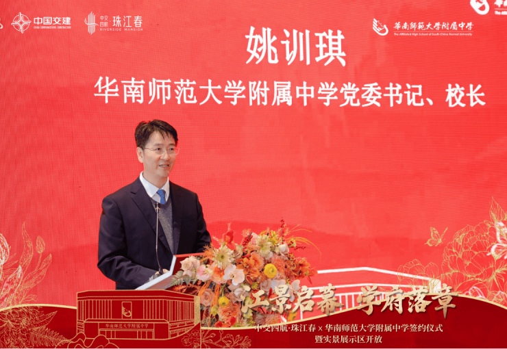 2026 年 2 月 5 日,中交四航・珠江春与华南师范大学附属中学战略合作签约仪式隆重举行。华南师范大学附属中学党委书记、校长姚训琪,华南师范大学附属小学党总支书记张锦庭,广州市黄埔区城市更新局党组书记、局长侯奔,广州市黄埔区黄埔街道党工委书记罗海琼,中交第四航务工程局有限公司副总经理王兆忠,中交四航局总经理助理、投资事业部总经理杨茯苓及珠江春项目代表等共同出席仪式,见证这一里程碑式的合作。