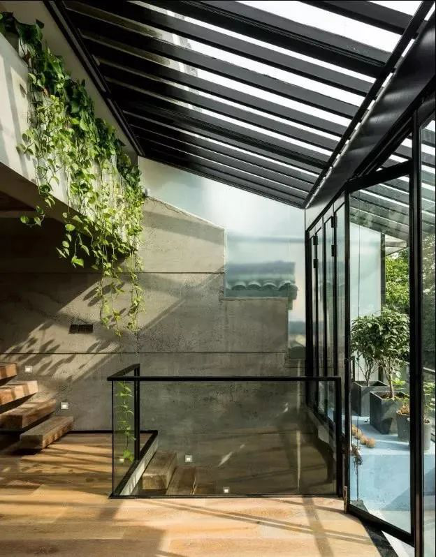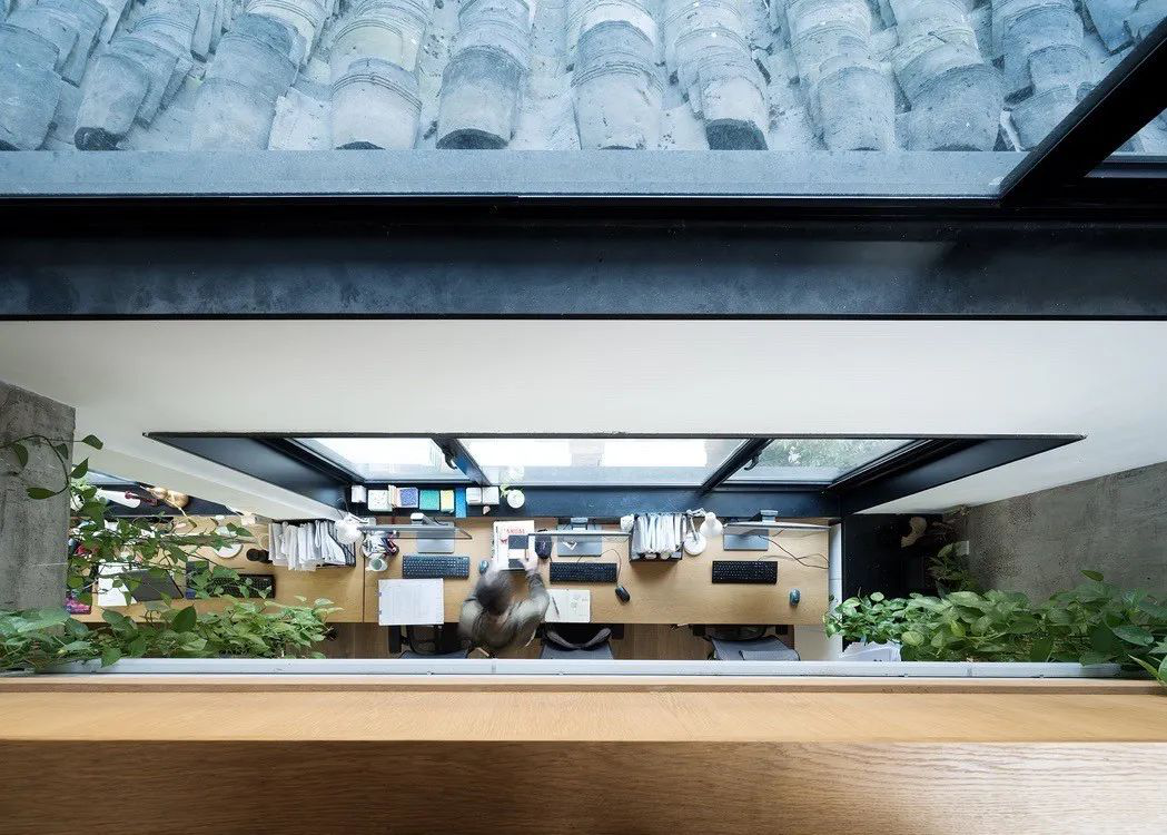 透明的玻璃挡板可以使光线直接透过玻璃照射在木质地板上,让人在工作休闲时也能感受到光影之美。