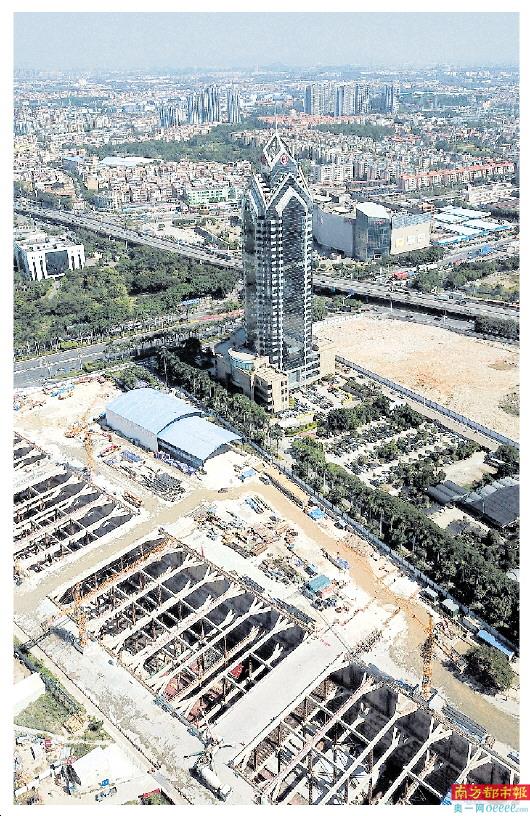 10月29日,航拍广州地铁18号线番禺广场站施工现场。南都记者 何玉帅 摄