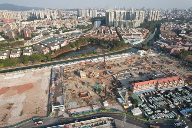 在原摩配城地块上,罗冲围首期安置房正在马不停蹄施工中,凌乱无序的门店不见了。明年,这里将是一片交付验收的全新居民楼。去年9月,罗冲围松溪片区先行启动首期安置区开工,建设1800套(20万平方米)村民安置房,将满足松南村、螺涌村共1000户至少每户1套100平方米以上安置房的居住需求。