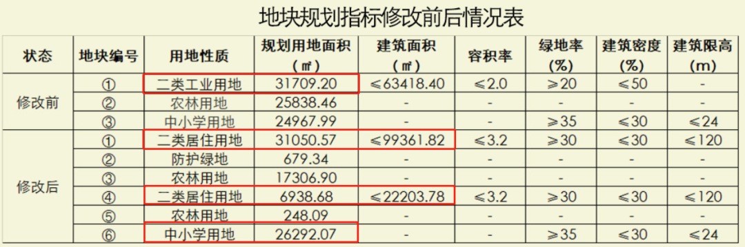 其实,此次调整主要将项目地块内面积工业用地调整为二类居住用地,调整后二类居住用地的容积率≤3.2,绿地率≥30%,建筑密度≤30%,建筑限高≤120米,用地面积为37979.25㎡,建筑面积不大于121565.6㎡。