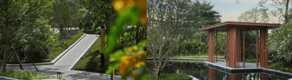 另一方面,项目内部打造了约近万平方米的沉浸式园林,绿化率高达约36%,且园林层次丰富,草木错落有致。漫步其间,移步异景。