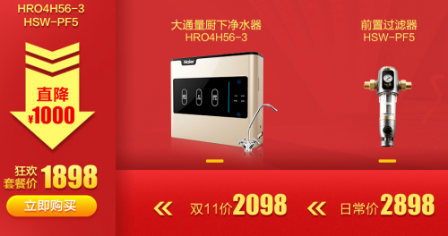 今日笔者介绍的这款全屋净水组合套餐在海尔净水商城中的折扣力度相当大,且其组合的产品每一款皆是市场高销量、深获大众青睐的产品,品质方面自然有保障,这款组合产品就是“HRO4H56-3大通量厨下净水器+HSW-PF5前置过滤器”,这两款产品参加双十一活动可为消费者节省不少money。这一套净水装备的日常价是2898元,在双十一活动中,仅需要1898元,整整优惠1000元!相当划算!