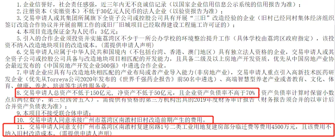 11月26日,广州公共资源交易中心发布两则荔湾区旧村更新改造项目以及增城区新塘镇石下村旧村改造项目,三个村社采取全面改造方式、合作改造模式,且均不接受联合体报名,其中以荔湾区两村社的旧改招婿条件尤为苛刻!