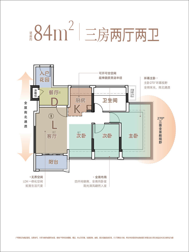 建面约83/84㎡三房,第一眼看过去就有惊喜!在80+㎡有限的面积段,嘉悦云启就做到了南北通透,LDK一体化,四开间朝南。