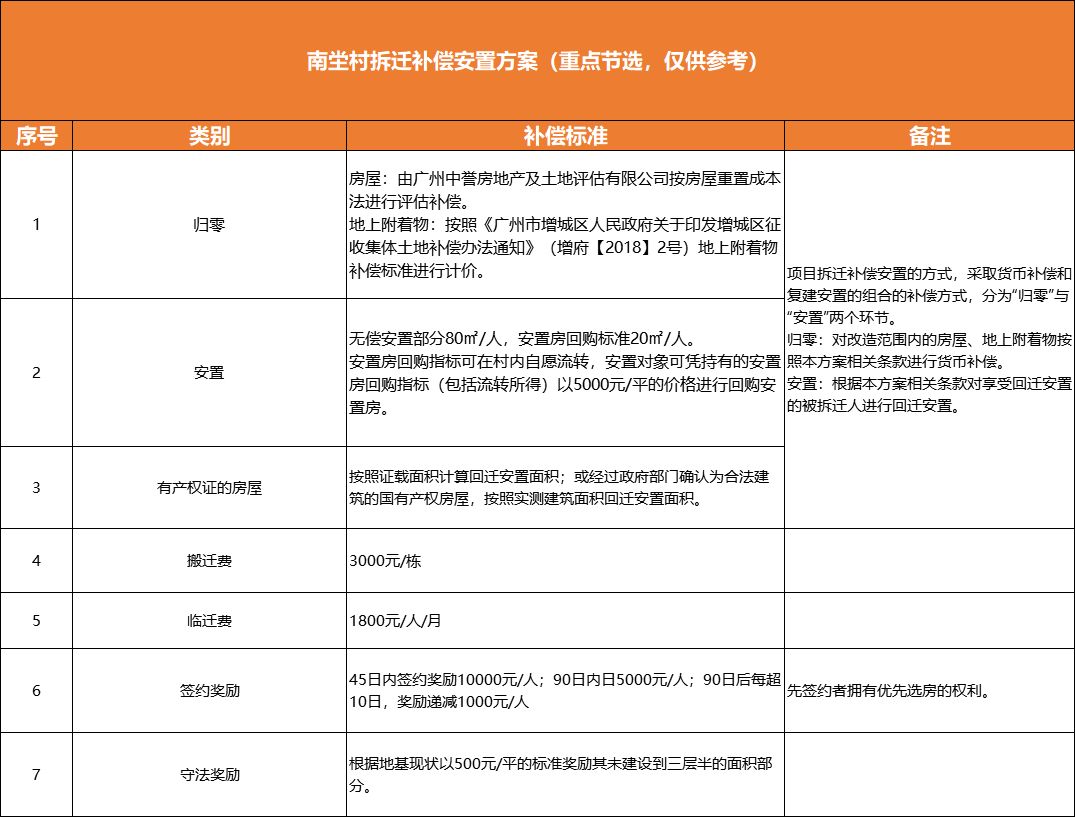 增城“猎德”拆迁补偿安置方案现身