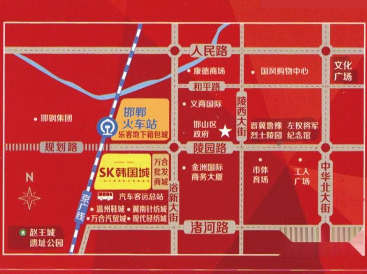 SK韩国城处于火车站南侧、邯郸汽车客运总站西侧。项目占地面积约6000平米,总建筑面积约5万平米,其中商业面积约1.7万平米,地下3层,地上27层,项目由尚客(中国)投资有限公司投资。