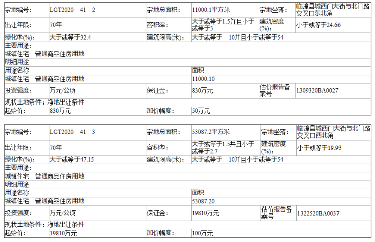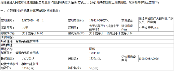 邯郸临漳县国土资告字[2020]23号土地拍卖出让