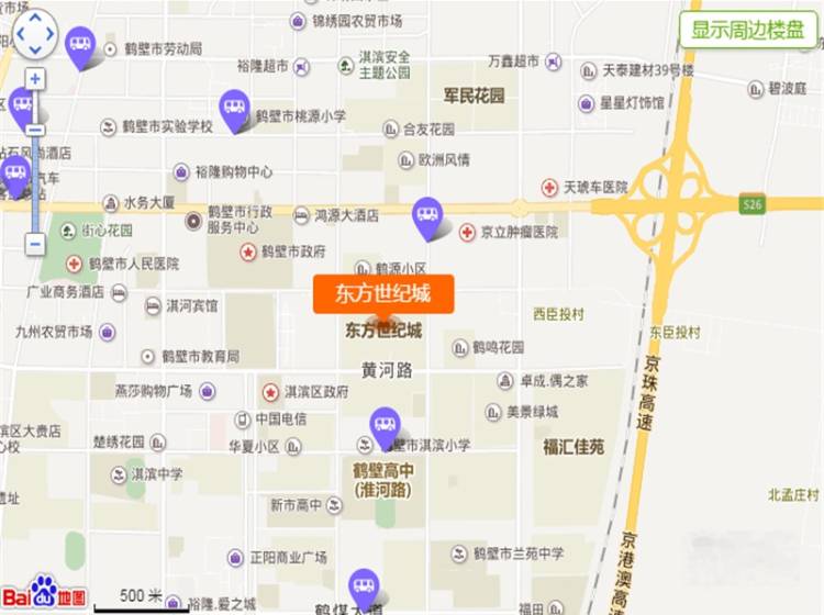 东方世纪城位于鹤壁中心世纪广场东200米处,项目东临衡山路、西靠嵩山路、南依黄河路、北面与五号院只有一步之遥,周边有多条公交线路通过,交通便利出行非常方便。东方世纪城,是鹤壁东方置业联手国际规划企业、国际著名建筑设计公司共同打造城市先进建筑群,涵盖多层、小高层、高层、复合型商业、酒店公寓等多种物业形态,社区由国际著名物业管理公司提供专业化物业服务,规划生活、休闲双会所、特色双语幼儿园等生活配套资源,专为城市精英量身打造,缔造出真正的融合衣食住行乐等多种功能于一体的城市新的居住、生活、商业中心,引领鹤壁国际化生活。