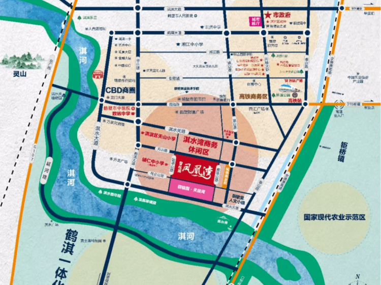 周边拥有万达广场商业中心-鹤壁东站商圈与会展中心商圈,距离项目约3.3公里,项目北部临近淇水湾商业步行街(在建),南侧临近鹿台阁广场;同时内部坐拥享誉鹤壁的文化风情商业街。餐饮、超市、娱乐等业态丰富,开启家门口购物新模式。