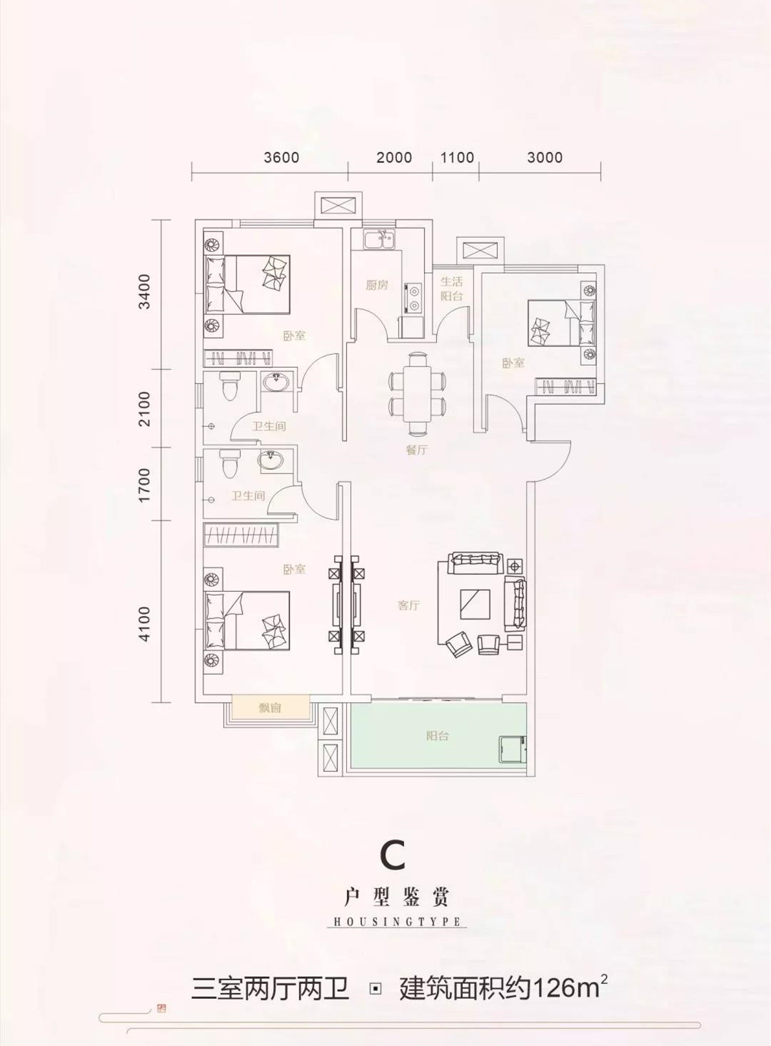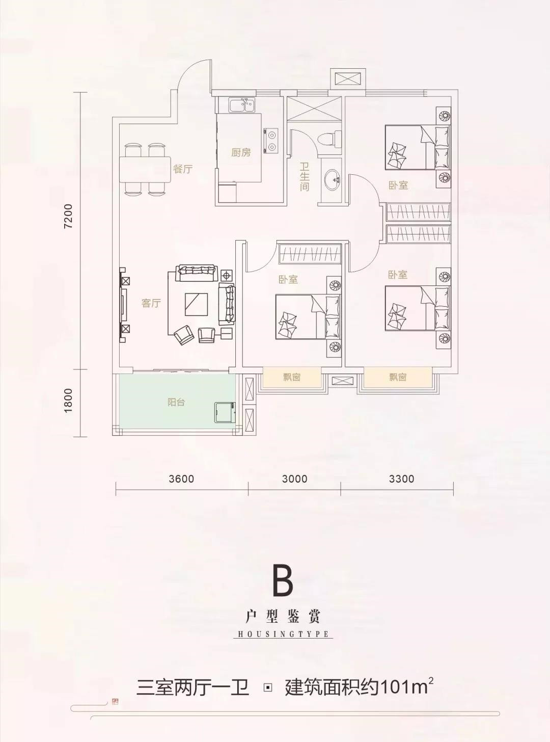 高层住宅户型以106平方米精致三室和129平方米阔绰三室为主,洋房户型面积为135平方米至262平方米。户户全明采光,南北通透,空间利用率高。另外,赠送情景飘窗,安逸优雅;连接观景阳台,视野开阔,阳光充裕。