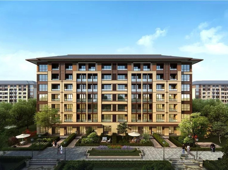 项目采用新中式建筑风格,主要通过严谨的建筑细节,立面材质和线条的变化,构成整体而富有变化的城市形态,在米黄色真石漆与石材的搭配中透漏出强烈的中式住宅独特的建筑品味和怀旧的情调。通过运用现代的材质及工艺,去演绎传统文化中的精髓,使之不但拥有典雅、端庄的气质,还具有明显时代特征。