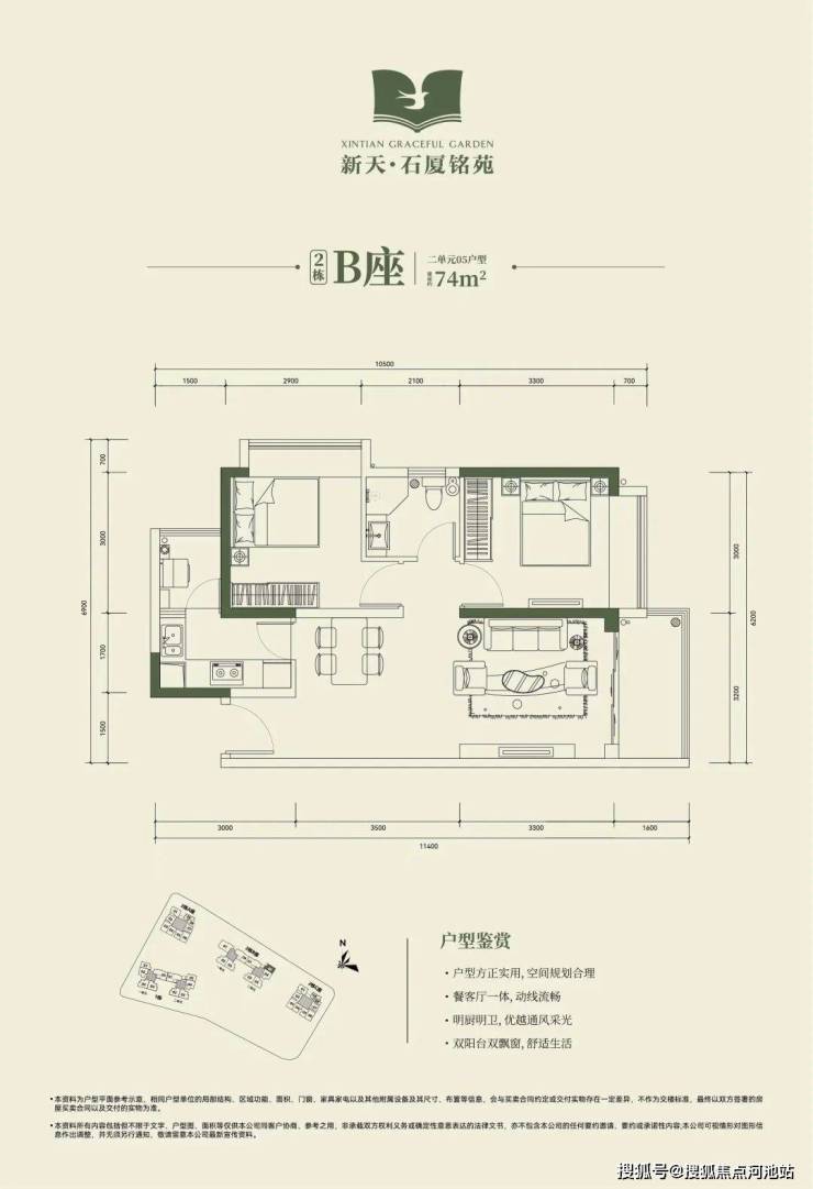 🔺2栋B座二单元04、05户型:面积约为72-74㎡的2房2厅1卫。