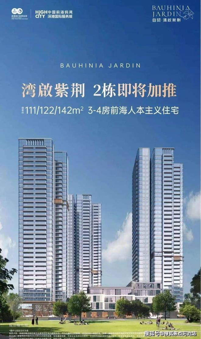 湾啟紫荆府位于前海妈湾听海大道,占地约1.5万㎡,住宅建面约6.6万㎡,容积率5.14,共有三栋住宅组成,层高36-37F,共485户,车位595个,车位比1.1.2,4梯5户,主推约96㎡稀缺三房、111㎡3+1房、122㎡四房、142㎡四房。户型设计了大客厅、宽景阳台、阔景飘窗等,拥有山海河多重景观资源,计划品质精装交付。户型采用建筑新规设计,户户大阳台,4梯5户,分布式电梯设计,独立电梯厅。