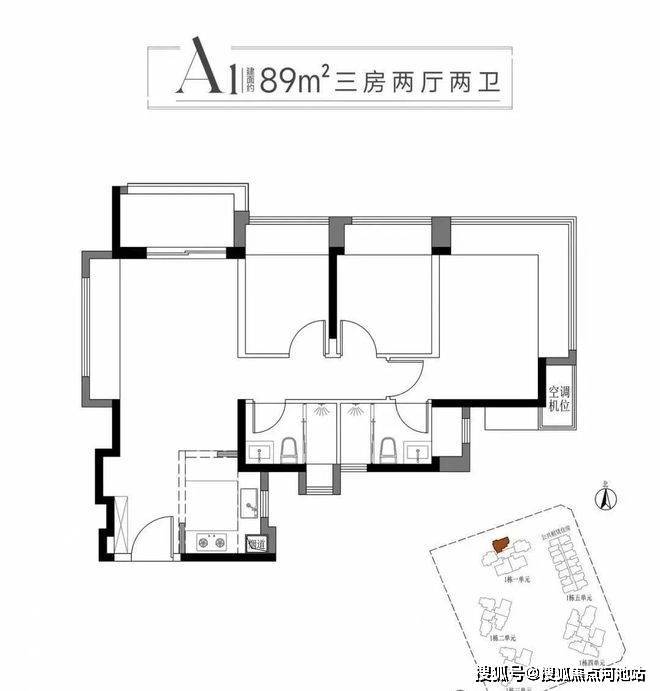 89m²的3房2厅2卫,A1户型,设计的是竖厅格局,LDKB一体化,客厅270°采光设计,S墙设计预留冰箱卡槽位,动静分区,U型厨房,卫生间干湿分离,得房率95-101%(包含赠送),西北朝向看科学公园景观。光明首创客厅270度采光视野+主卧270度转角无柱飘窗+科学公园开阔视野。