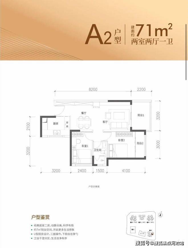 约68-71㎡2房2厅1卫