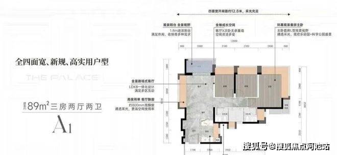客厅270度采光设计,客厅更是采用了当下最流行的设计风格「无主厅化」,而且客厅的凸窗进深达到了80CM。入户玄关S型冰箱位,能更大释放出厨房的操作空间,阳台+三个卧室均拥有无敌开阔的视野。