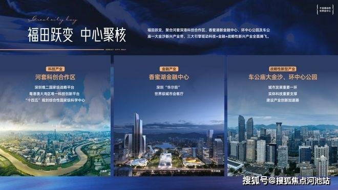福田跃变,聚合河套深港科创合作区、香蜜湖新金融中心、环中心公园及车公庙—大金沙新兴产业带,三大引擎驱动科技+金融+战略性新兴产业全面腾飞。