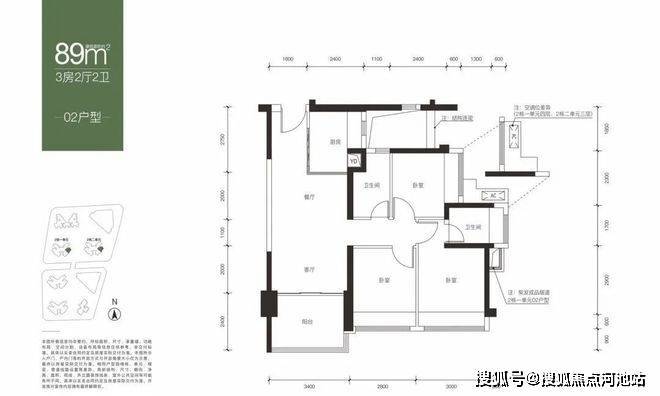 【面积】:约82-89㎡3房2卫