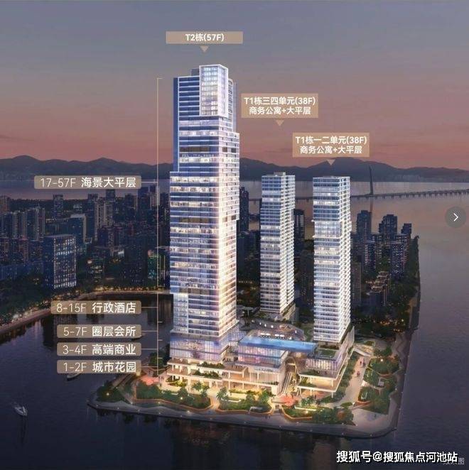 华侨城新玺二期即T2栋 总层高57层,249.7米,17-57F 海景大平层(中区17-43F、高区45-57F 户型分布如下图所示)
