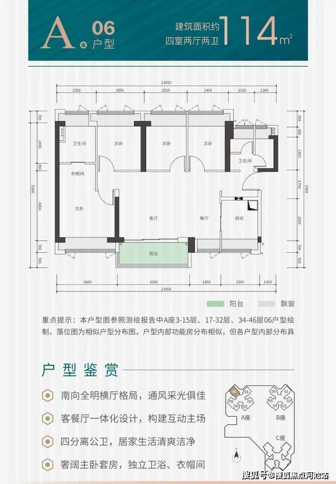 项目户型:建面约82-115㎡三至四房