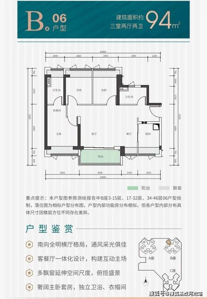 3.户型设计合理:全南向采光,82㎡实现三房、93㎡三房两卫,得房率76.2%,LDKB一体化布局提升空间利用率。
