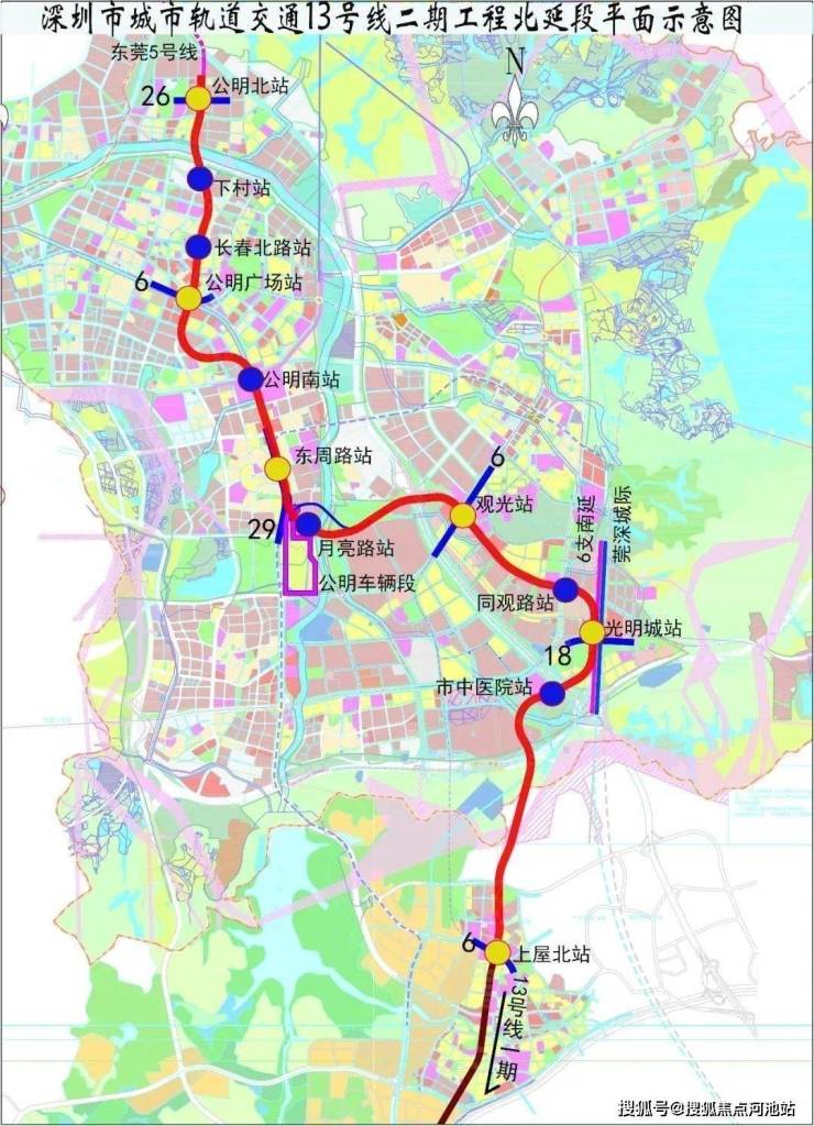 深圳地铁13号线,从深圳湾口岸向北到达公明,未来会与东莞5号线连接直达松山湖。