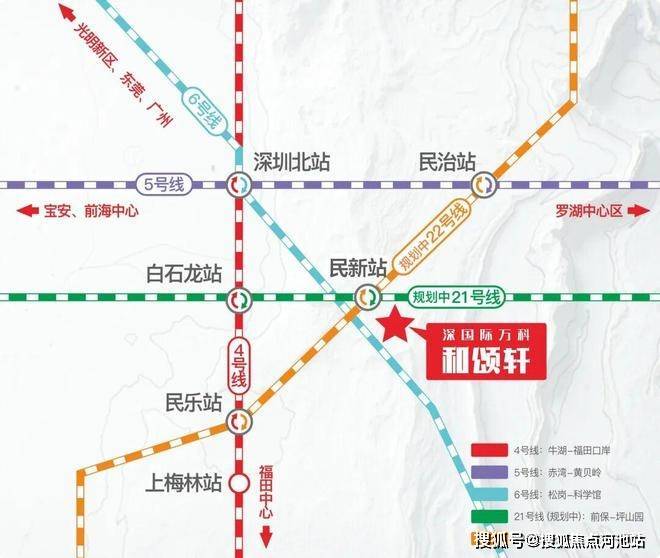 万科和颂轩由深国际联合置地与万科共同开发,位于龙华梅林关口民治大道与民乐路交汇处。项目为综合体业态,涵盖住宅、公寓、写字楼及商业,总建筑面积约44.7万㎡,绿化率30%。