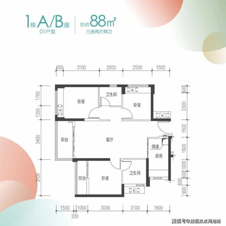 建面约84-89㎡的3房2厅2卫,升级版“神户型”,同样亮点满满。