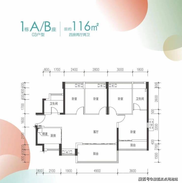建面约116㎡的4房2厅2卫, 大面宽阳台,将采光、视野发挥到最大化。餐客厨一体化设计,空间非常阔绰。