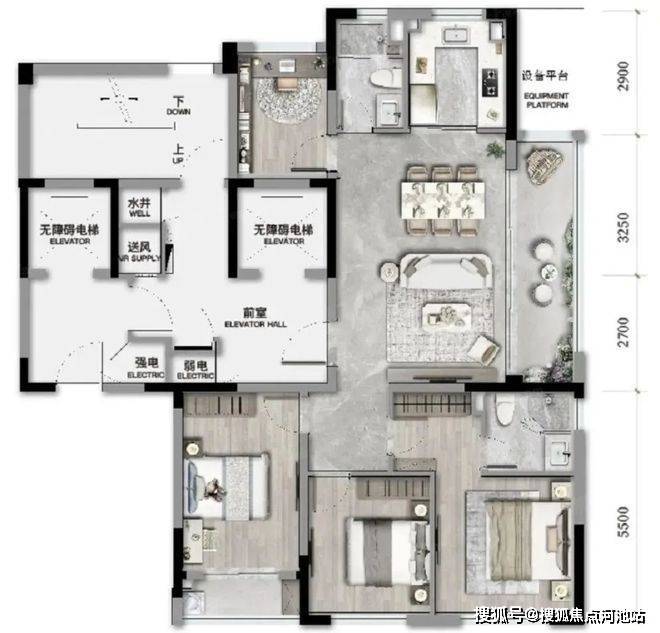 ◎梯户比:4梯5户,专梯入户(每户都有独立电梯厅)
