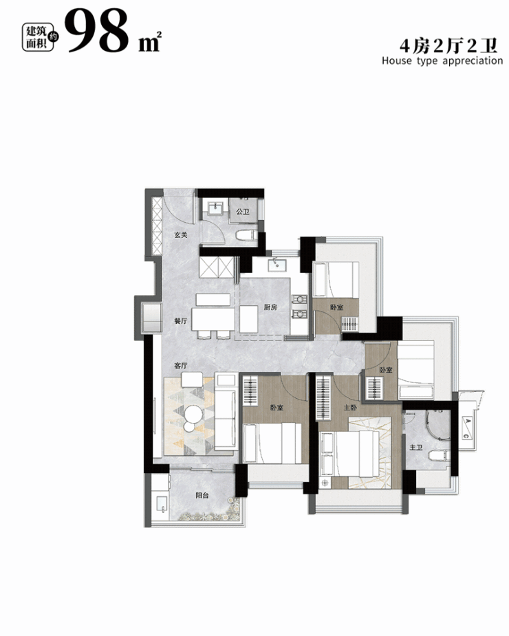 有建面约83㎡的3房2卫、89㎡的大3房2卫,也有建面约98㎡、114㎡的4房2卫产品,能满足一家三口、乃至三代人的不同居住需求。