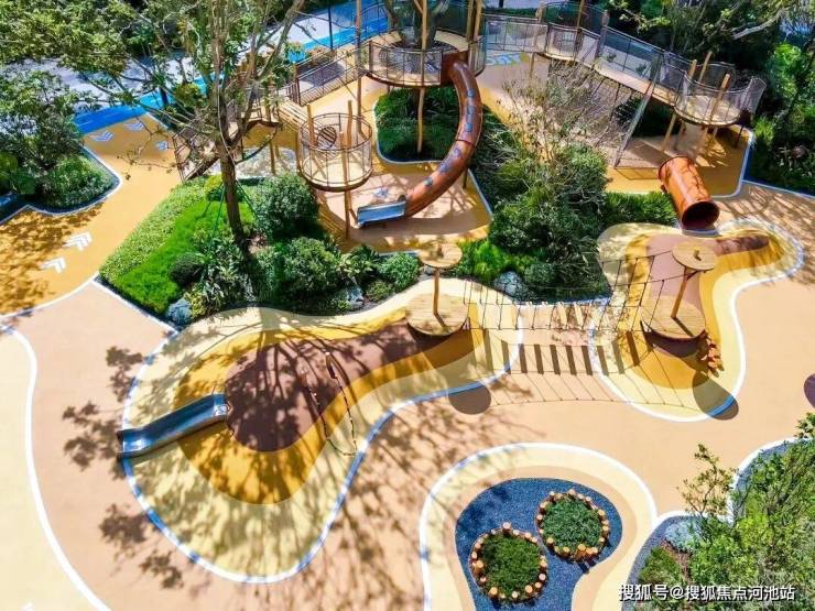 侧重娱乐、活动与交友功能,设置了滑滑梯、平衡桥、梅花桩、跳远、跳格子等儿童设施,让小孩可以快乐成长、轻松交友。