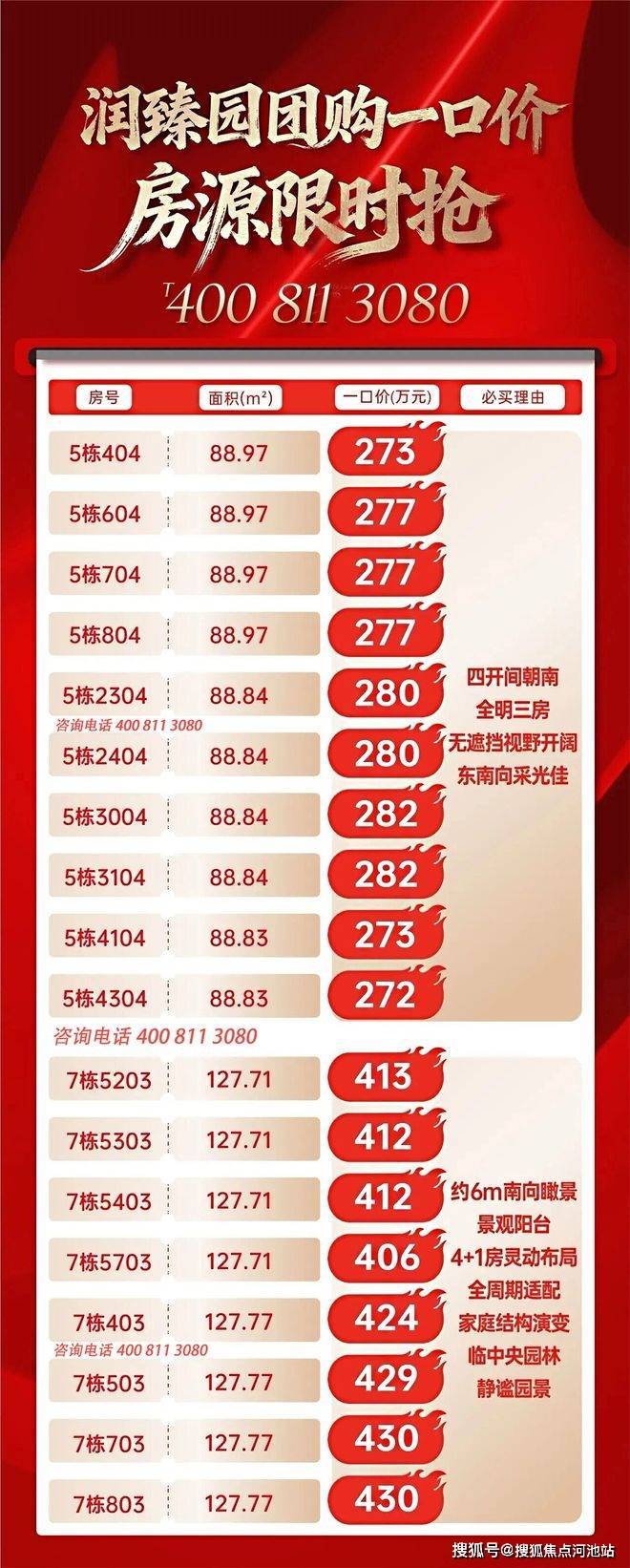 下面是近期我们润臻园5栋近期推出的一口价房源,数量有限,先到先得,欢迎来电咨询最新折扣优惠情况和房源销控消息。预约看房的话以下价格还能谈!