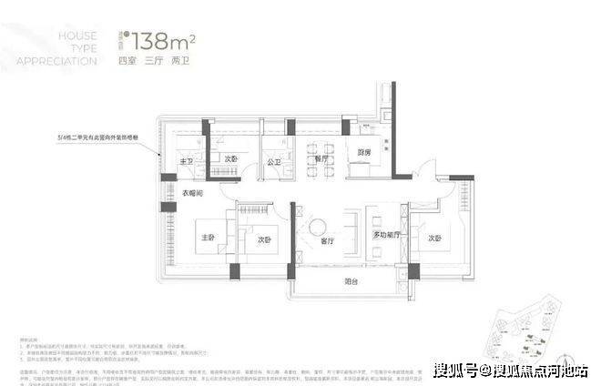 建面约138㎡4房3厅2卫