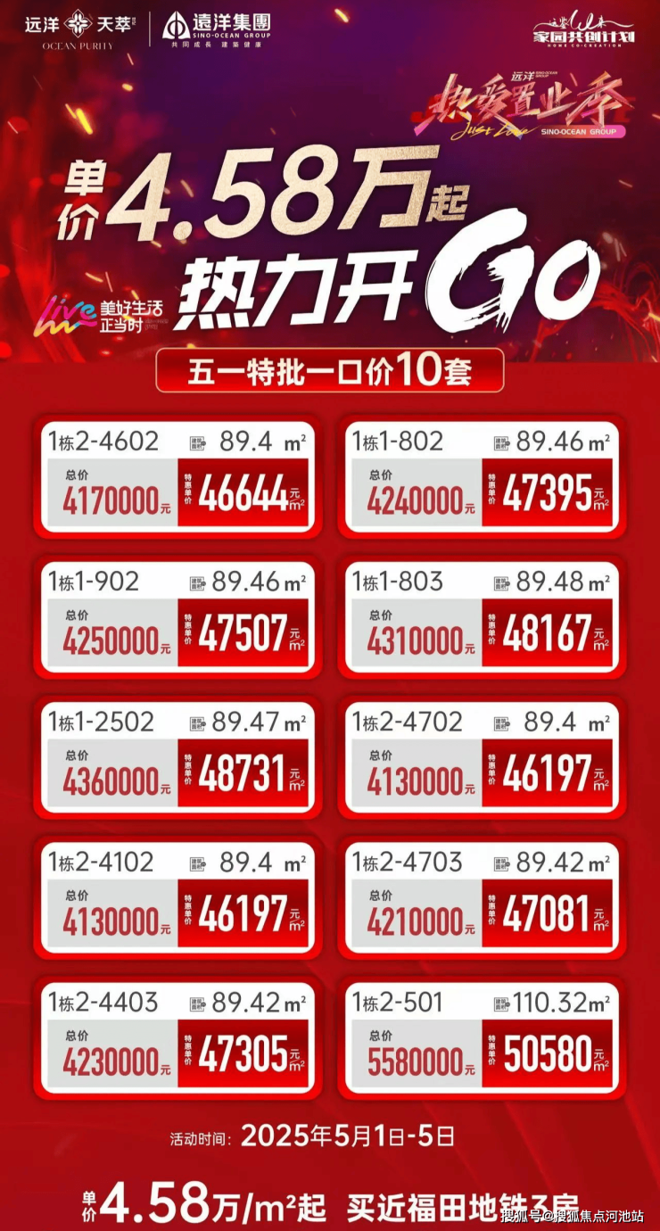位于深圳市龙岗区坂田新楼盘【远洋天萃·世纪雅园】已开盘入市,这次推出的房源在1栋的1单元、2单元和5单元,一共有543套房子。房子有不同的大小和户型:89平方米的是三居室,有两个卫生间;110到128平方米的是四居室,同样配备两个卫生间。每平方米的备案平均价格是5.35万元,最低单价4.69万元,最高6.1万元,总价在420万到778万元之间。远洋天萃开发商计划在2026年12月之前交付房子,交房时房屋会完成精装修,而且采用的是华为智能家居系统,科技感满满,业主可以直接拎包入住。