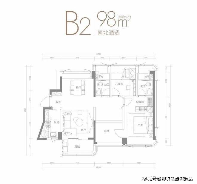 98㎡的3房2厅2卫,设计的横厅南北通透格局,进门入户玄关,客厅3.5米开间,四开间朝南,3个卧室分别是3.2米/3米/2.8米的宽度,L型厨房,得房率:75.91%(不含赠送),阳台主朝西南或东南向。