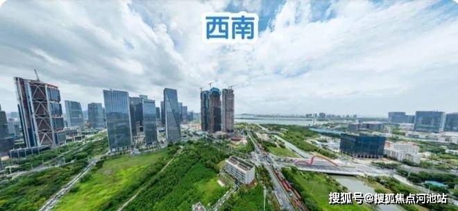 西南:近距楼下是一小块公园绿地,稍远一点有储备新型产业用地,也有在建的前海湾TOD超高层建筑,西南偏南远景视野会非常局限,西南偏西景观还可以,双界河、华侨城欢乐港湾、前海湾内海、珠江口外海这些景观都能看到。