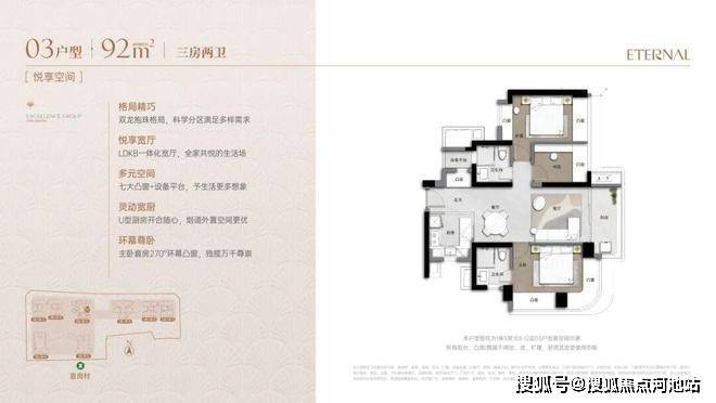 3.户型高使用率(>90%):新规设计下,91-173㎡主力户型配备“弹性方厅+环幕主卧+三面采光”,空间利用率远超周边项目平均水平。
