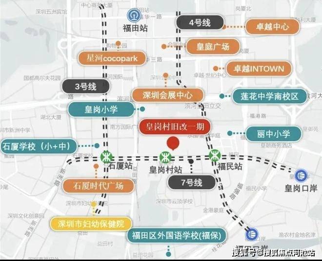 1.黄金地段与交通枢纽区位价值:位于福田CBD核心区,紧邻皇岗口岸(2站地铁),与香港联通便捷,周边聚集平安金融中心等顶级商圈。地铁直达:项目预留7号线皇岗村站接口、距4/10号线福民站约300米、3号线石厦站约500米,4地铁环绕。
