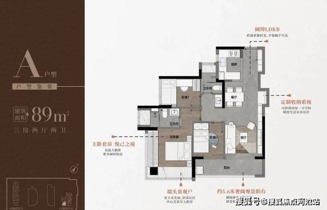 A户型东南向仅29套,拥有5.6米的大阳台,使用率92%