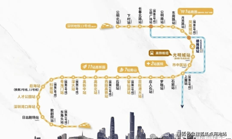 项目地理位置优越,路网四通八达,距离地铁13号线德雅路站(在建)约100米,届时7站可直达南山;自驾上龙大、南光、外环高速可以快速抵达深圳各区中心。