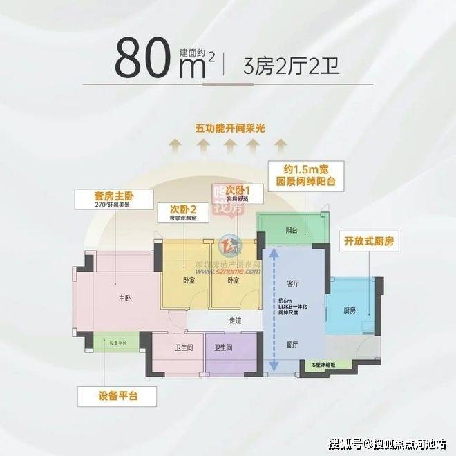 80㎡是本批次产品中唯一设计为南北对流格局,而且是整体横向采光,位于1栋,仅有2条腿,朝向社区内部园林相对静谧。