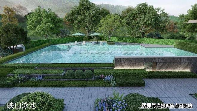 映山泳池:隐奢酒店度假感引入,巧妙将远处山景映入眼底,打造不过时的经典。