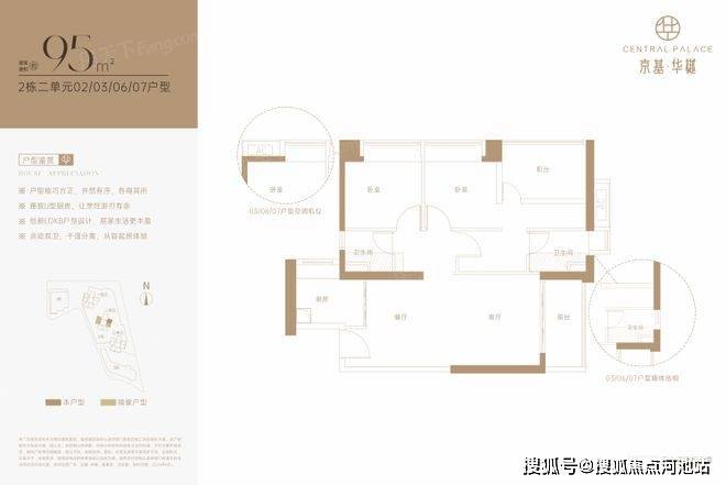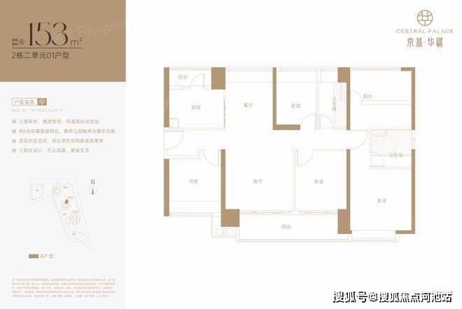 项目户型包括95㎡的3房2厅2卫、99㎡的3房2厅2卫、111㎡的3房2厅2卫、120㎡的3房2厅2卫、143㎡的4房2厅2卫及153㎡的5房2厅2卫,143㎡四房为横厅设计。