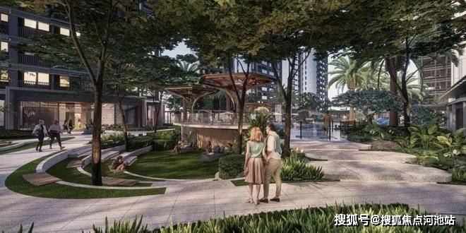 小区设置了非常丰富的林荫休憩空间,围绕“森境园林”搭建出众多场景,在园区里种植了多达65种植物,针对空气适宜性改善、生物多样性提升功能分类,构建九处有温度的艺术森林。