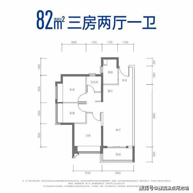 建面约82㎡三房两厅一卫