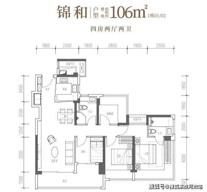 •锦月·建面约104㎡4房2厅2卫:南向四开间,6米阳台引景入室,自此生活融于风景