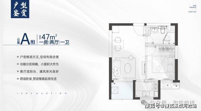 约47㎡户型:实现一房两厅一卫功能布局,独立明厨和干湿分离卫浴,客厅开间约3.5米