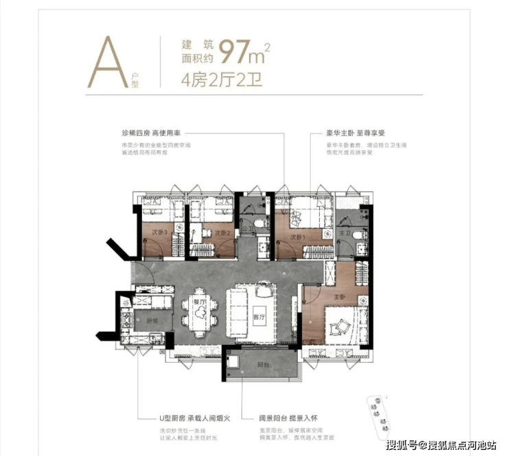 97㎡的4房2厅2卫,折后总价约270万起,单价约2.78万/㎡。